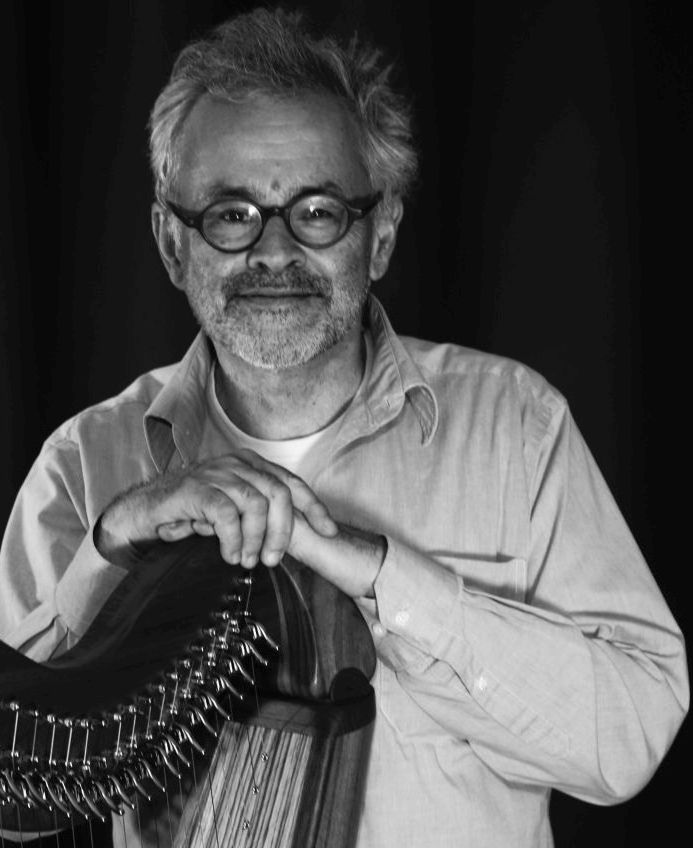 Seine Harfe stammt aus der Werkstatt seiner Frau Bernadette, die im fränkischen Seenland ein Fachgeschäft für Harfen betreibt und wunderschöne klangstarke Harfen baut .